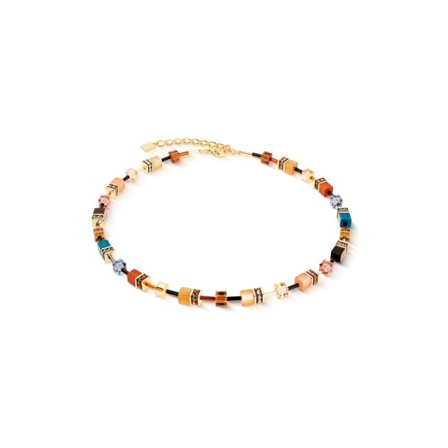GeoCUBE Collier Coeur de Lion GeoCUBE Iconic Precious en acier doré, turquoise, jaspis de paysage et aventurine vert, oeil de tigre, cristaux Swarovski, strass et verre