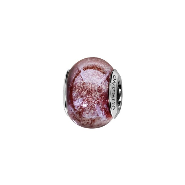 Charms en argent rhodié et verre de Murano vieux rose pailleté
