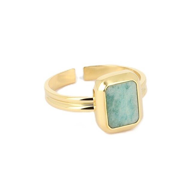 Bague ZAG Omonia ajustable Acier doré et Amazonite