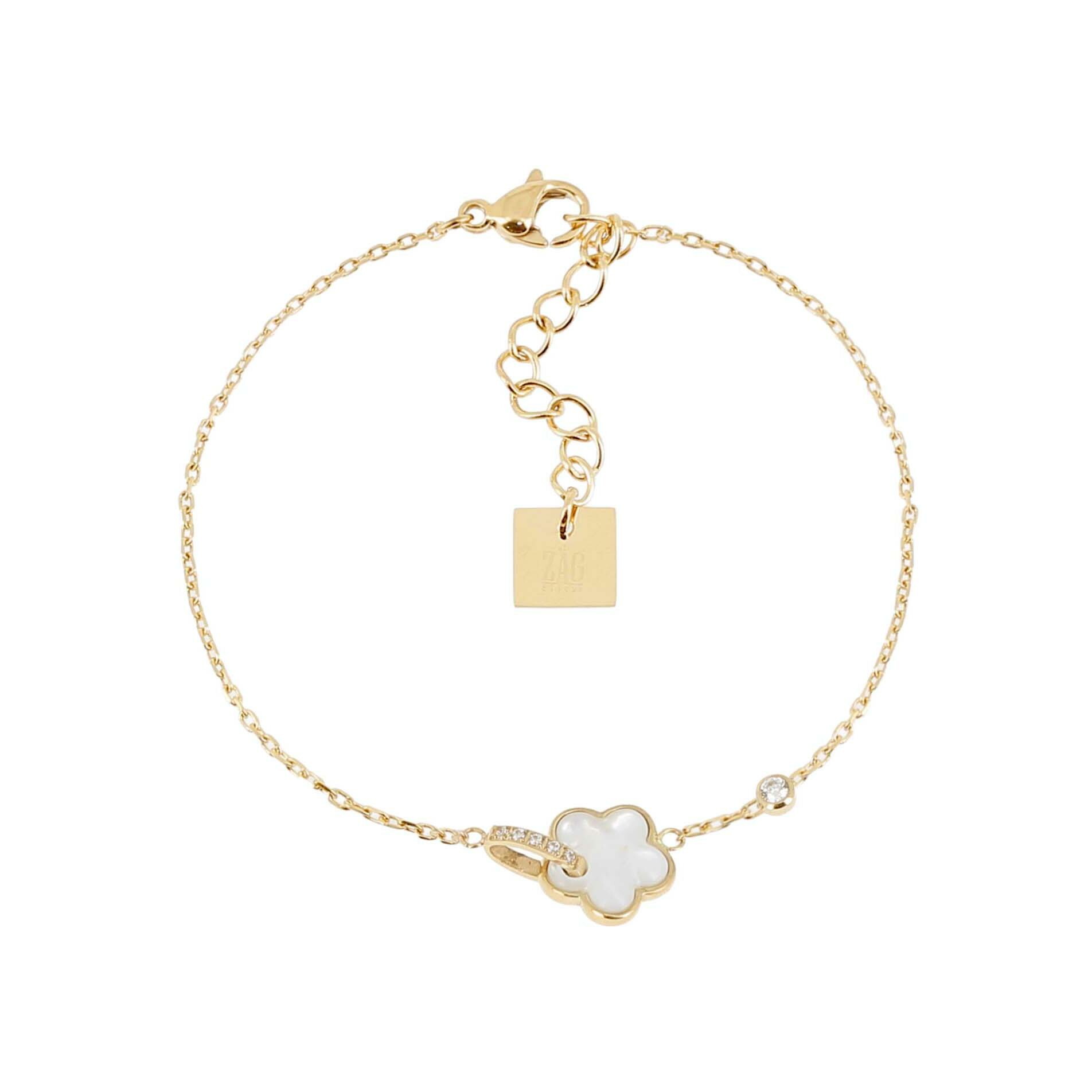 Bracelet Zag Naïs en acier doré, oxyde de zirconium et nacre Description détaillée
