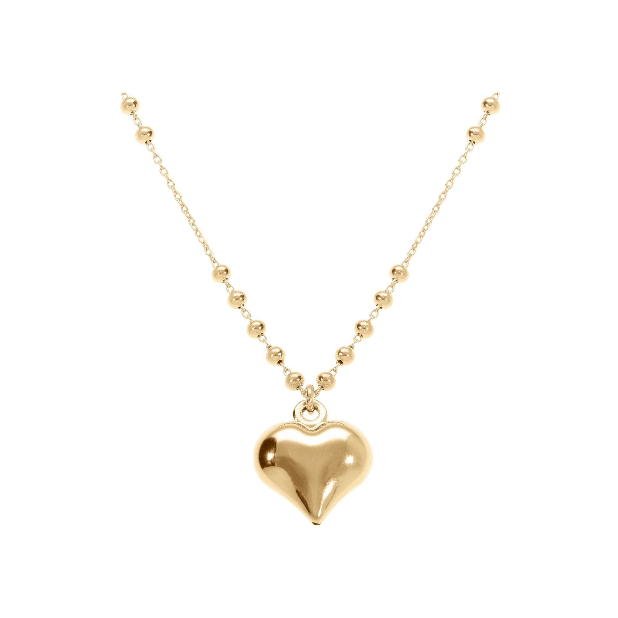 Collier argent doré chaîne avec boules pendentif coeur bombé 42+3cm Description détaillée